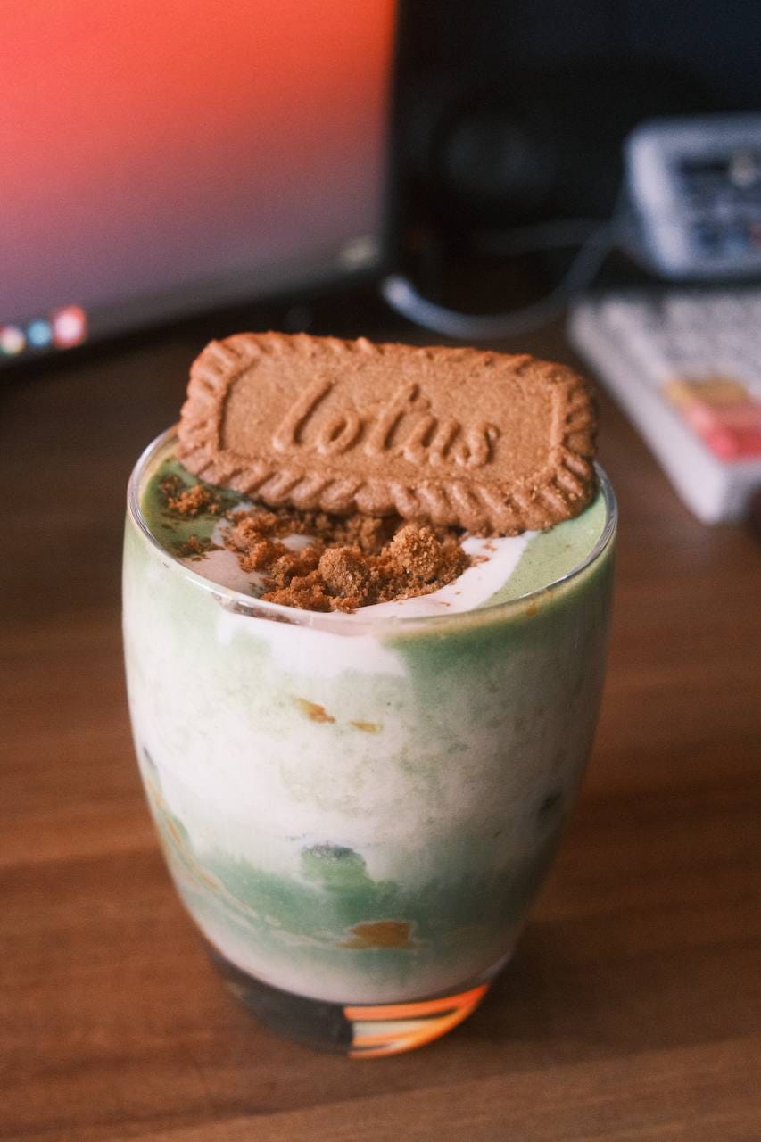 So in 2026, I decided to do something for myself: I’ll experiment with a different matcha recipe every month. For January, I’ll be making a Biscoff Crunch Cream Matcha Latte (inspired by this recipe on matcha.com). Yes, I know there are only 4? 5? more days in the month. But I’ve already made this drink 3 times, and each time it was infinitely tastier than the last. This is also my first-ever post on Substack, and I didn’t want to take you all on this journey without being confident in this recipe.